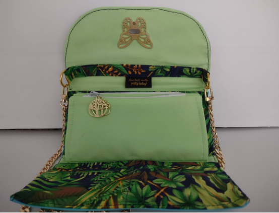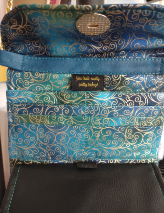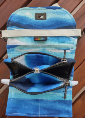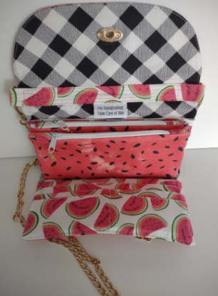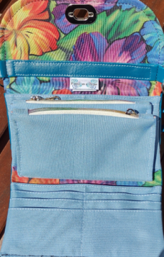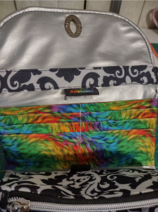 A stylish wallet that holds up to 12 credit cards, cash bills, checkbook, change and your cellphone on the back in it's own pocket. A crossbody strap can be used or a wristlet strap. A fun mix of chain and strap can added for the look you want. Just remove the strap and add to your purse if you'd like to use as a wallet only.
