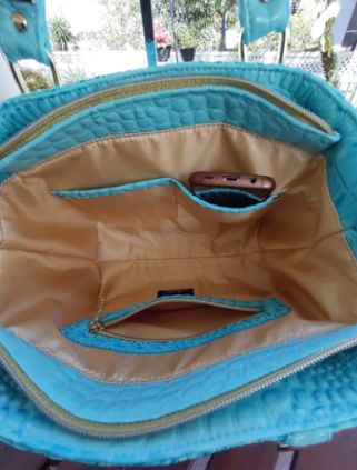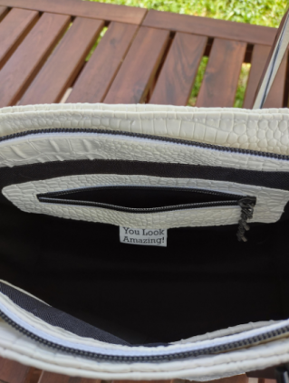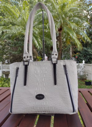 The Rudeneja Handbag has a striking look to the front with the double zips and using the icicle strap brackets {optional} just adds to that look. A very roomy bag on the inside with slip pockets and an addition zip pocket.