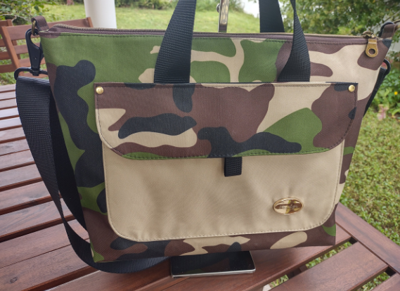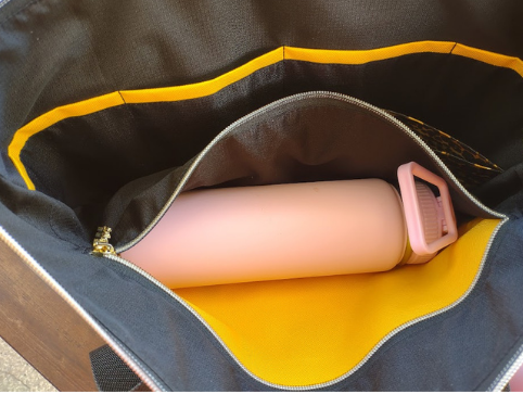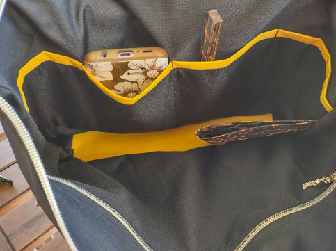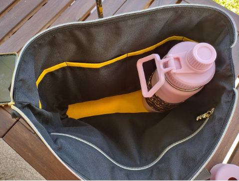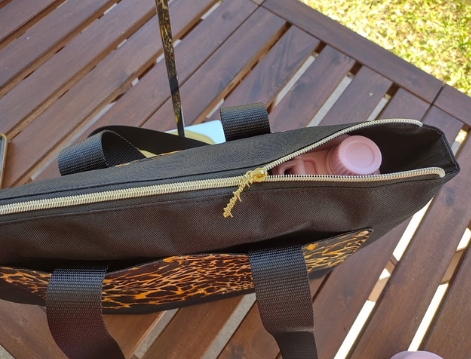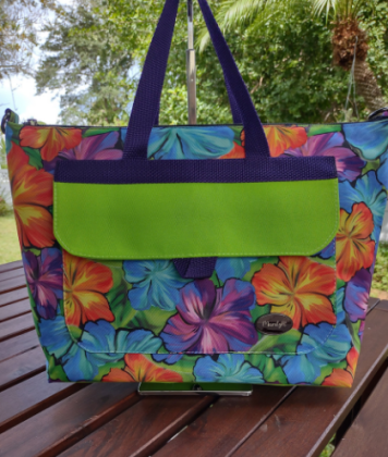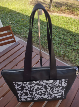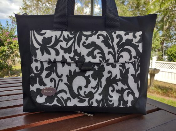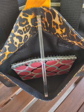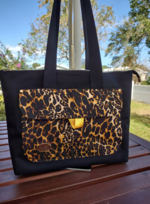 The perfect travel bag for a plane trip, beach outing, shopping excursion. The list of features are many. Outside front has a large pocket with a magnetic snap closure. the reverse side has two large slip pockets perfect for your cellphone. The inside has a strap for your 24 oz. drink bottle, an extra large zipper pocket and up to four customizable slip pockets.