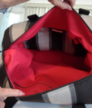 The Xanadu Traveler is large enough to use as a softsided suitcase for a carry-on to fit in an overhead compartment of a plane. It has a seperate zipper section along the bottom that can be used as a shoe compartment and even waterproofed. The inside can hold a weeks worth of clothing items and the sides unclip to give just a little bit more room to stuff.