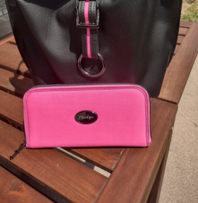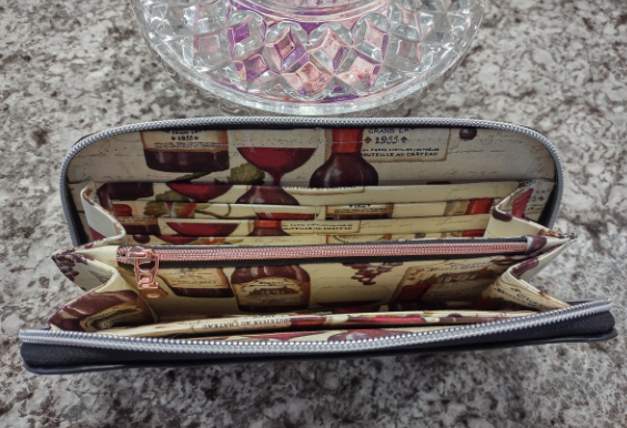 A Classic Zip Around wallet, zips on three sides to keep items inside secure. Convenent card slots secured by RFID fabric.